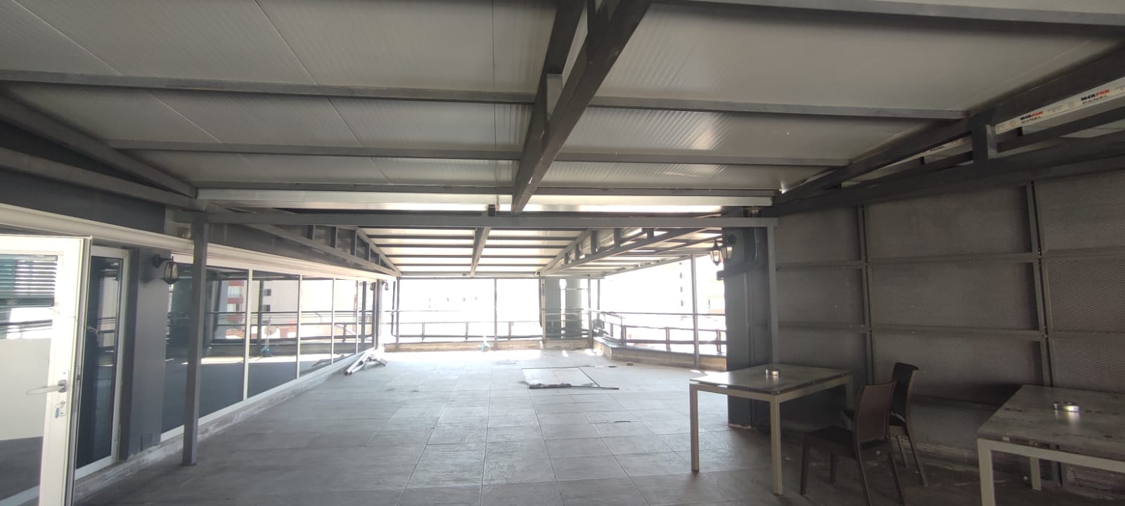 Mevcut betonarme üzerine 2 adet çelik konstrüksiyon kurulumu -Kurulan yapı üzerine sandviç panel montajının yapılması -Panel önüne kaynaklı oluk montajı -Yağmur iniş borusu montajı